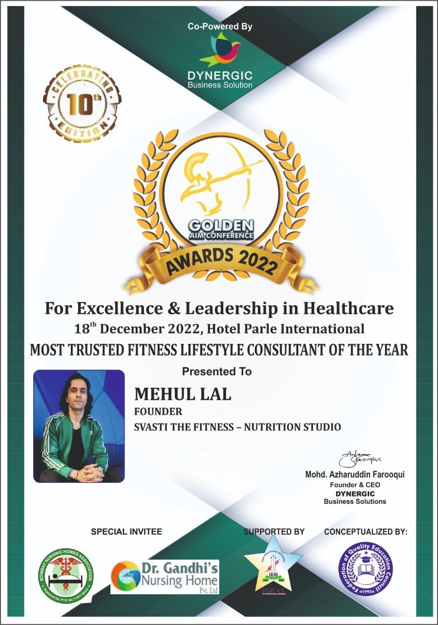 - Most Trusted Fitness Lifestyle Consultant of the Year β Mumbai, 2023